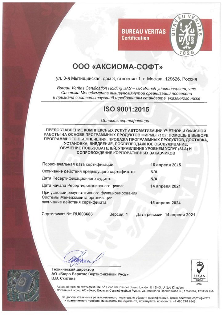 «Аксиома-Софт», официальный партнер компании 1С, гарантирует: